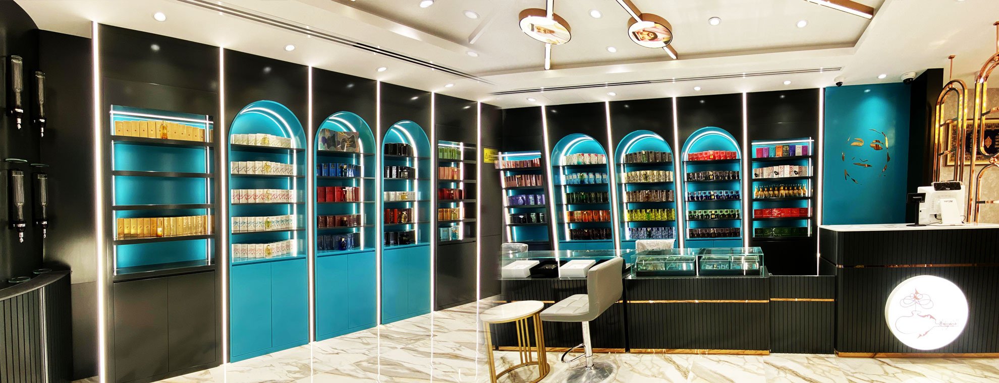 ATYAB PERFUME ISN’T JUST A STORE LOCATED AT DUBAI; BUT IT’S A BEAUTIFUL SPACE THAT’S SPECIALLY CRAFTED FOR FRAGRANCE LOVERS! IT WAS A TREAT TO FORGE A BLEND OF MODERNITY & CONVENTIONAL STYLE, CRAFTING A SPACE THAT CAPTURES THE ESSENCE OF OPULENT FRAGRANCE.